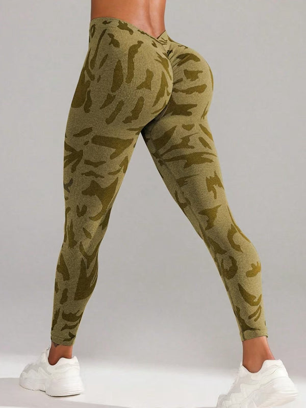 ZASUWA Female Sexy Camouflage Deep V Back Scrunch Bum Leggings